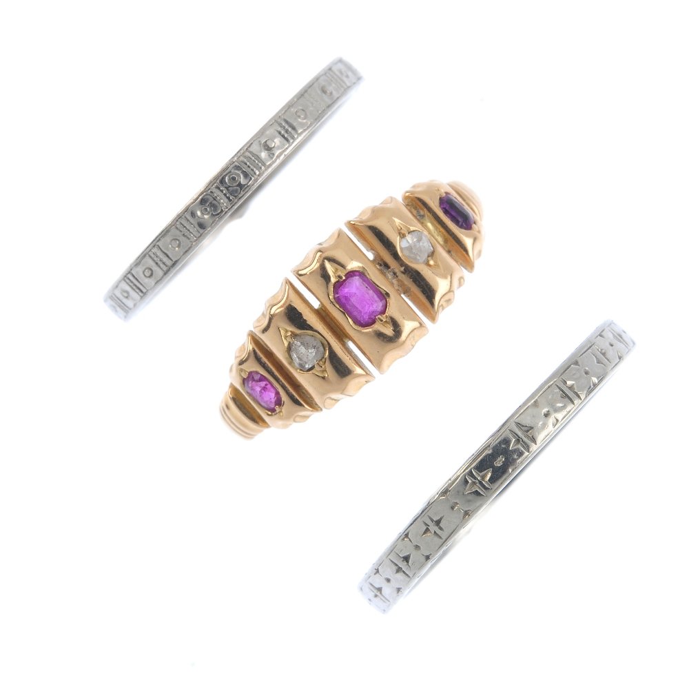 Three rings. To include a late Victorian 15ct gold ruby