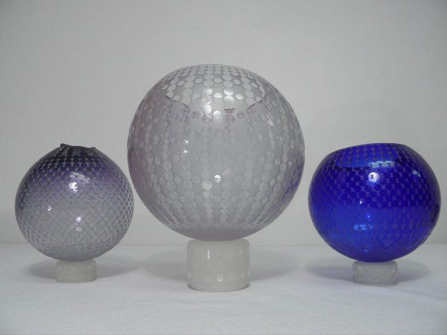 THREE R.L. GARDNER ART GLASS GLOBES