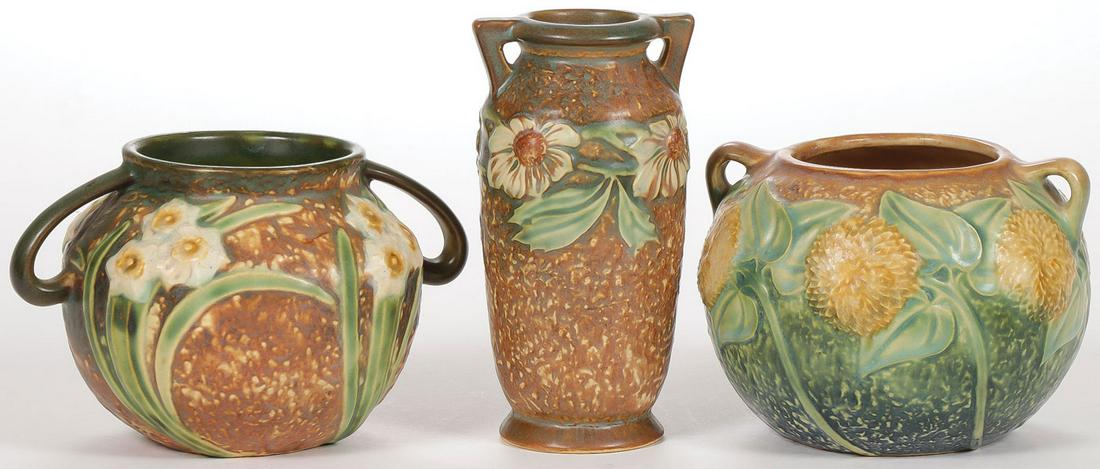 A lot of three variously decorated and shaped Chinese porcelain vasesFeb 24, 2026Lot of 3 Chinese Vases & Cup - Tea Dust, etc.2 days LeftA lot of three Chinese Qianjiang and famille rose variously decorated porcelain vasesFeb 24, 2026Roseville & Hull Art Pottery Vases 4pc LOT527 Lots AwayLot of (3) Roseville Art Pottery ItemsMar 15, 2026Lot of (3) Nemadji Art Pottery VesselsMar 15, 2026Lot of (3) Art Pottery Pieces Roseville & Van BriggleMar 15, 20263 Pieces of Roseville Pottery2 days LeftFive retro jugs in glazed ceramics. Beautiful glazes and shapes. Belgium, 1960s / 70s.Group of 3 Antique Roseville Floral Stoneware Pitchers2 days LeftTwo Roseville and RRP Vintage Art Pottery PitchersMar 01, 2026Roseville Early Ware 1910-16 Vintage Art Pottery PitchersMar 01, 2026Roseville Dahlrose 1928 Vintage Arts And Crafts Pottery Brown VasesFeb 15, 2026Roseville Weller Vintage Art Pottery Vases BowlsMar 01, 2026Roseville Thornapple Dawn Rosecraft Blue Green Vintage Pottery VasesMar 01, 2026Rookwood Roseville Rozane Vintage Pottery Standard Glaze VasesMar 01, 2026