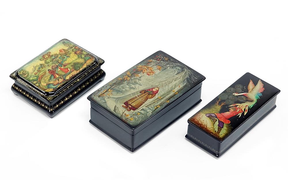 Lot of 2 Russian Imperial Marked Lacquered Hand Painted Boxes19 hrs LeftVINTAGE LADIES NECESSAIRES LOT LOCKET BOXESFeb 07, 2026Lot of Three Signed Russian Palekh Jewelry BoxesFeb 08, 2026Lot of Four French Enameled Table BoxesFeb 08, 2026Chinese Jade Box & Carved Stone Objects 5pc LOTFeb 05, 2026Birds Eye Maple & Inlaid Wood Storage Boxes 3p LOTFeb 05, 20263pc Russian Lacquer Boxes, incl. Palekh & Kholuy3 days LeftThree Palekh Russian Lacquer Boxes3 days LeftFive 20th C. Russian Lacquer Boxes, 3 5/8 - 6"L.19 hrs LeftMAHOGANY & BRASS JEWELRY BOX & LACQUERED BOXFeb 19, 20262pc Russian Palekh Hand Painted Lacquer Boxes3 days LeftPair F Russian Lacquer Papier Mache Napkin Rings By Vyshniakov In Original Boxes3 days LeftThai Black and Gold Lacquered Table Boxes, 2Feb 12, 2026Suzuribako Japan, Taisho period185 Lots Away4 Silver Jewelry Boxes incl. Japanese and Heintz Art Metal5 days LeftThree Chinese jade-inlaid cloisonne boxes, Republic period or later4 days Left