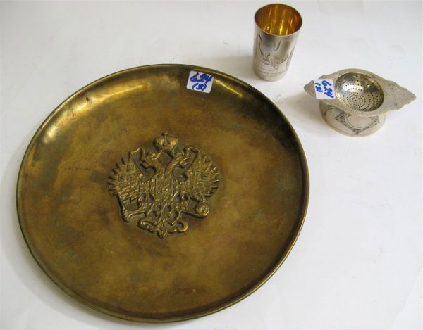 THREE RUSSIAN PIECES: sterling silver tea straine