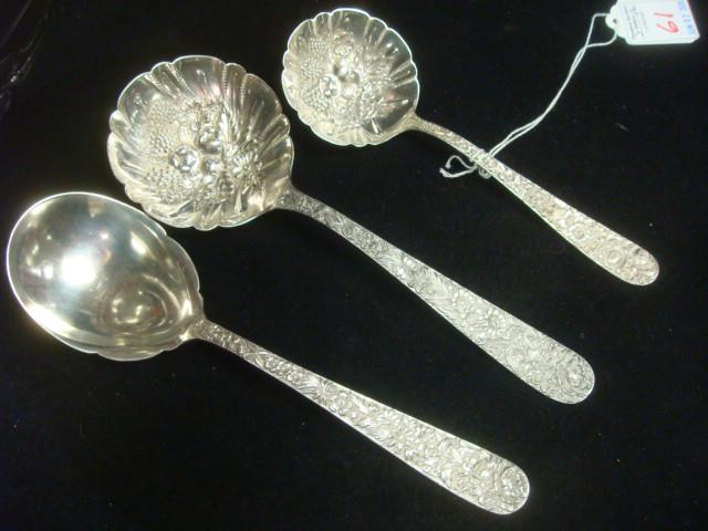 Three S. KIRK & SON "Repousse" Serving Spoons: