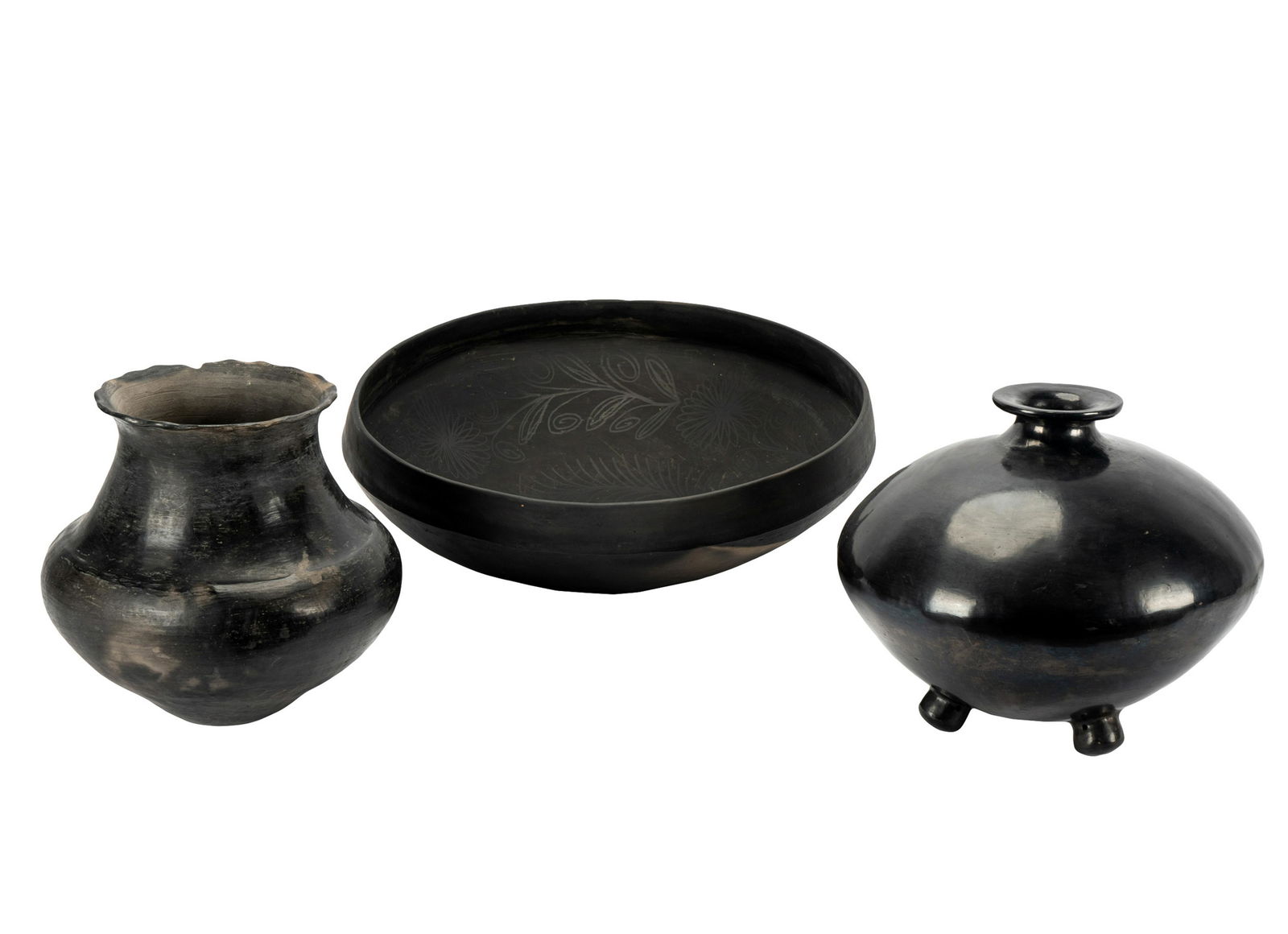 THREE SANTA CLARA BLACKWARE POTTERY VESSELS