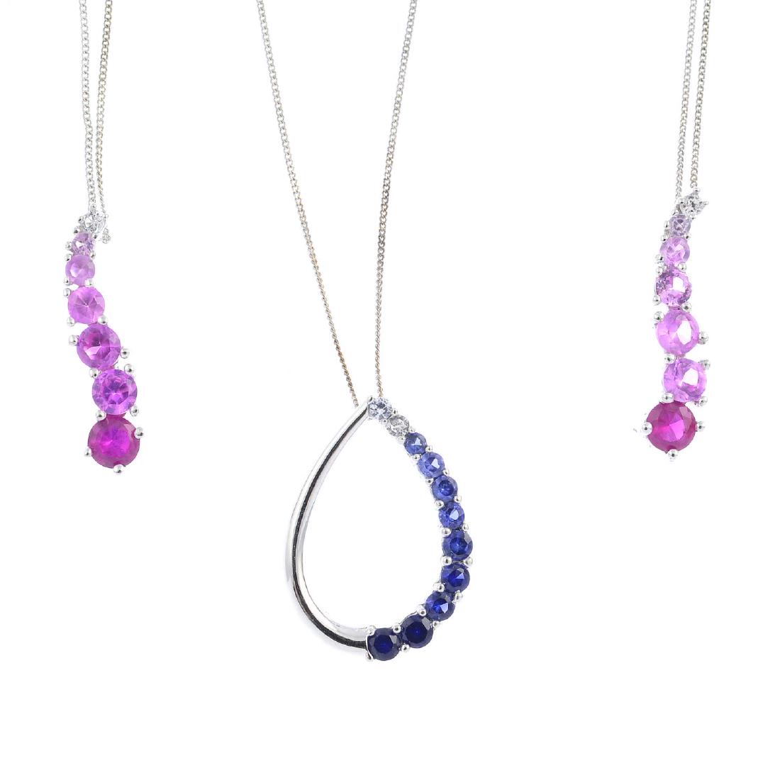 Three sapphire pendants. To include a circular-shape
