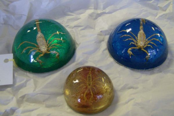 Three scorpion paper weights