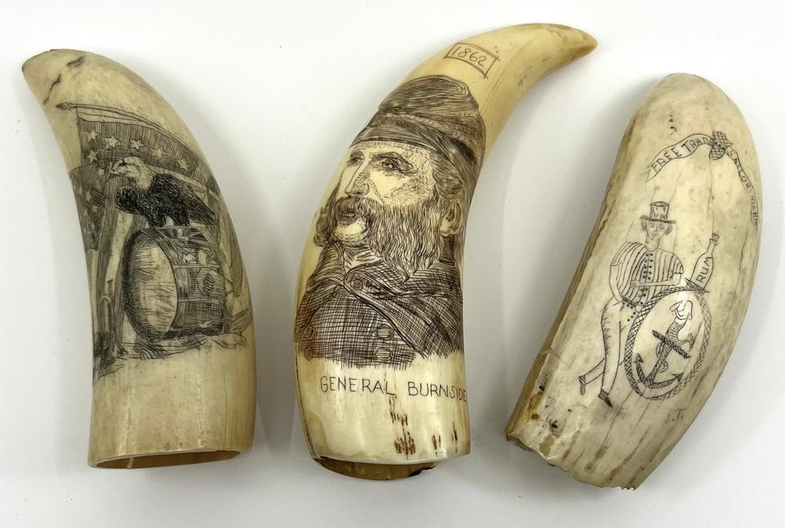 Set of Three Chilean Military Knives, Numbered3 days LeftA Collection of Three Vintage and Modern Fixed-Blade Knives including J. Marttiini5 days Left(4) SCRIMSHAWN WHALE'S TEETHFeb 21, 2026* ENGRAVED WHALE'S TOOTH "WHALESHIP WILLIAM BADGER GOING TO UNCLE SAM" 20th Century Length 5.75".3 days LeftExquisite Antique Scandinavian SAMI KNIFE FINE Bone ScabbardFeb 08, 20263 Bamileke or Bamun Ritual Palm Wine Cups, Carved Buffalo HornFeb 03, 2026Delicate 19th C. Japanese BONE FOLK ART Ensemble ScrimshawFeb 21, 202619th century Decorated Horns2 days LeftRARE MAINE MARINE FAMILY SCRIMSHAWN 1881 POWDER HORNFeb 21, 2026Collection of Western Americana Items4 days LeftThree Command Tally Tablets, Thunder-Struck WoodFeb 24, 2026Antique Whale's Teeth, Inuit Scrimshaw, etc.Feb 07, 2026SMALL SCRIMSHAWN WHALE'S TOOTH WHALING SHIP & LIGHTHOUSEFeb 21, 2026A Collection of Three Canes Marks to tallest: (DFeb 13, 2026SCRIMSHAWN WHALE'S TOOTH OF WHALING SHIPFeb 21, 20261871 SAILOR SCRIMSHAWN SEAL RIB, PORT OF NEW BEDFORD, MASS.Feb 21, 2026
