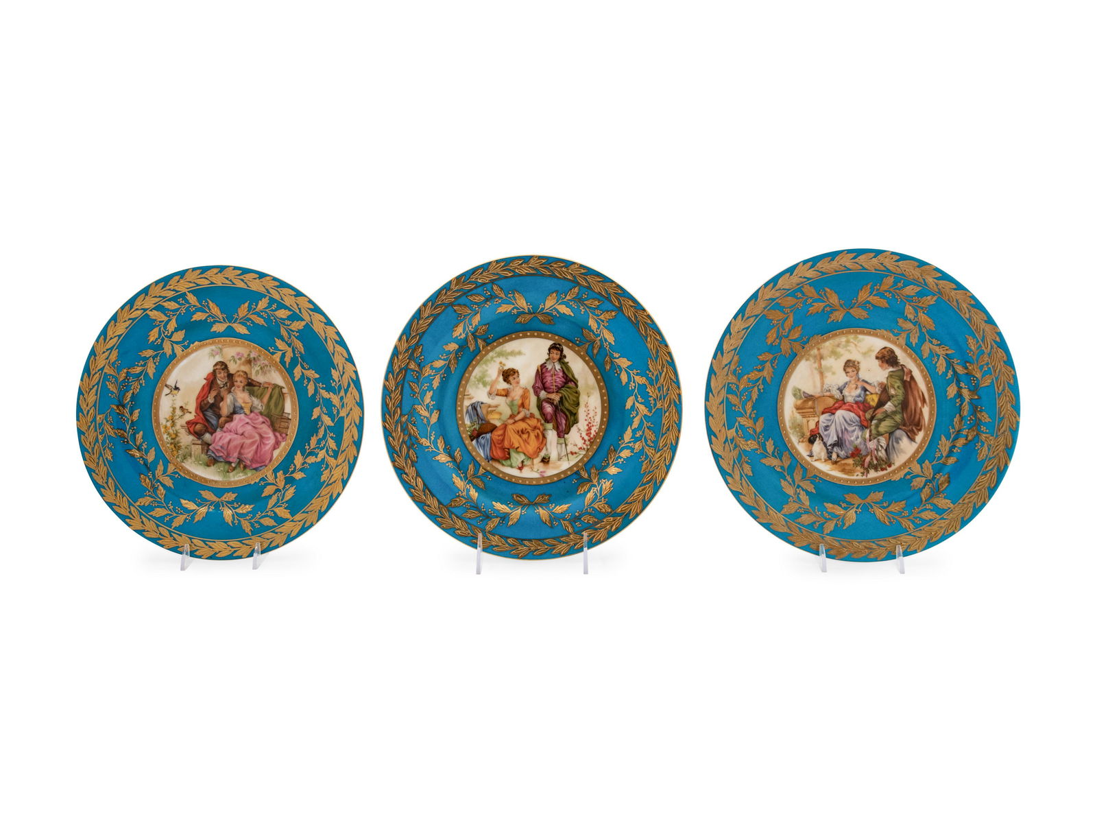 Three Sevres Style Porcelain Plates