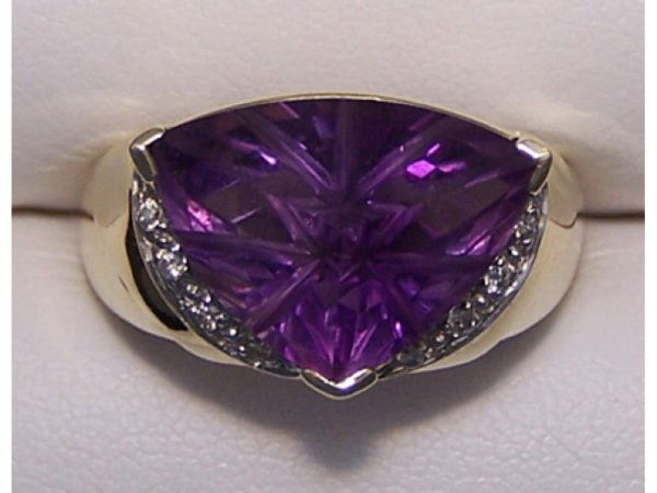 Sold9.00ct Amethyst & 14K Ring W/Diamond Accents9.00ct Near Flawless Amethyst & Solid 14K Yellow Gold Ring W/Genuine Diamond Accents (Has Maker's Mark) - This beautiful ring is made of solid 14k yellow gold, and boasts a lovely, 9.00ct (approximateSee Sold Price