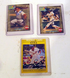 Three Signed Baseball Cards Sosa, Beera, Robinson