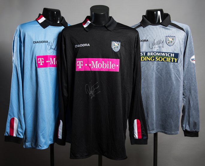 Three signed West Bromwich Albion goalkeeping jerseys,