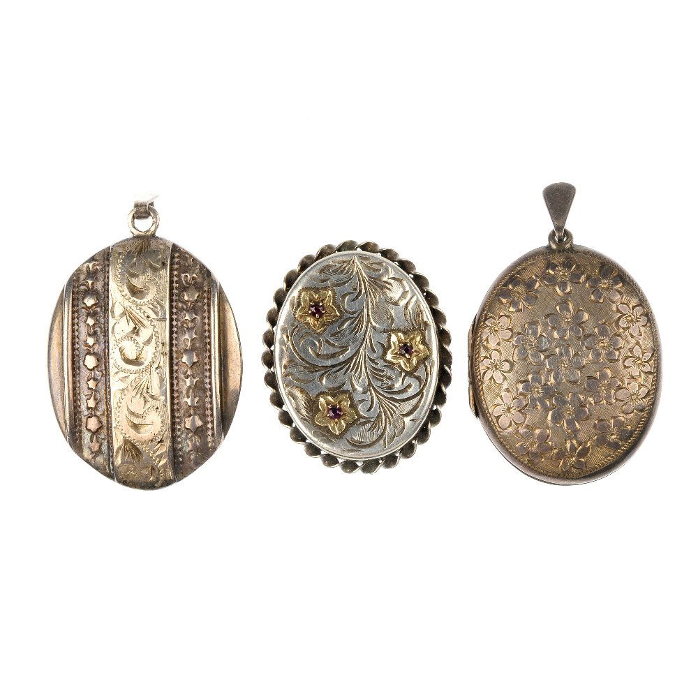 Three silver lockets.