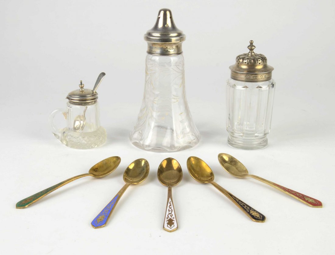 Lot of Enamel and Silver Enamel Table ArticlesMar 21, 2026Silver Silver & Cut GlassMar 21, 2026THREE SILVER MOUNTED CUT GLASS SCENT BOTTLES. 134 grams overall. 9.5 cm high. (3)6 days LeftThree Silver Mounted Glass Scent Bottles. Dutch Marks, weight 138g. Largest 8.5 cm high. (3)6 days LeftThree Silver Mounted Glass Scent Bottles. Dutch Marks, weight 163g. Largest 11.7cm high. (3)6 days LeftThree Silver Mounted Glass Scent Bottles. Dutch Marks, weight 110g. Largest 8.9 cm high. (3)6 days LeftFour Antique Silver Pieces incl SterlingMar 20, 2026Three Silver Mounted Glass Scent Bottles. Dutch Marks, weight 157g. Largest 12.1cm high. (3)6 days LeftA collection of silver, various dates and marks,Six English & French Silver & Silverplate Utensils8 hrs LeftANTIQUE COIN SILVER TABLESPOONS3 days LeftThree Silver Mounted Glass Scent Bottles. Dutch Marks, weight 156g. Largest 9.2cm high. (3)6 days LeftThree Silver Mounted Glass Scent Bottles. Dutch Marks, weight 242g. Largest 8.9cm high. (3)6 days LeftThree Silver Mounted Glass Scent Bottles. Dutch Marks, weight 196g. Largest 11cm high. (3)6 days LeftFive Colorless Glass Decanters8 hrs Left