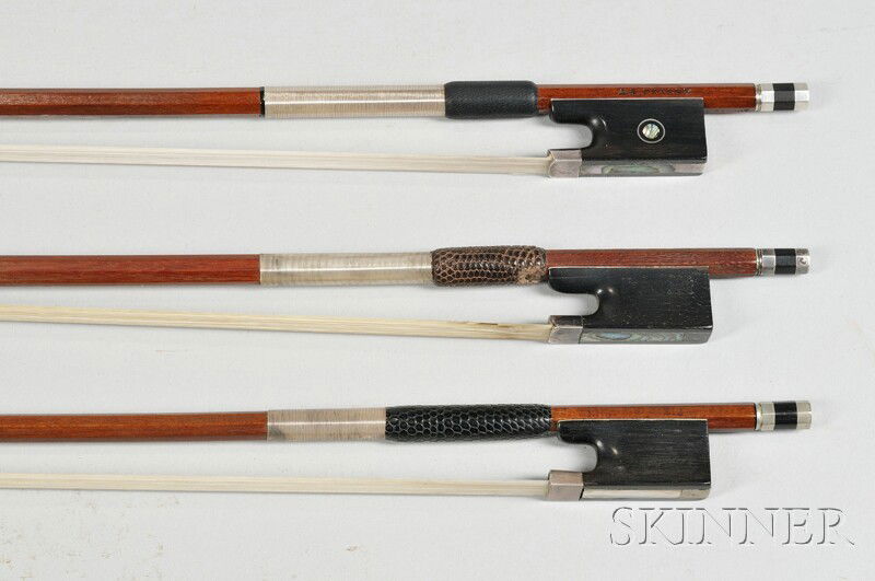 Three Silver Mounted Violin Bows, including Prager