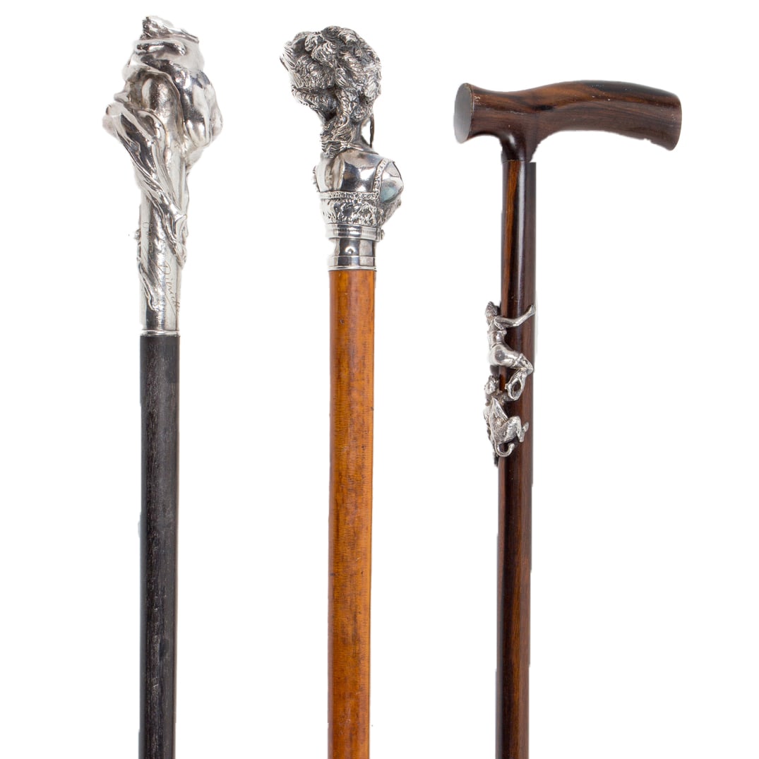 Lot of 3 Figural Walking Stick Canes3 days LeftLOT OF 3 ANTIQUE WOODEN SILVER HORN CANESFeb 19, 2026LOT OF 3: SWORD CANE, SWAGGER STICK, AND RIDING CROP.Feb 25, 2026Lot with 8 Canes & Walking Sticks.443 Lots AwayFive Metal-Mounted and Painted Carved Wood Anima6 days Left(3) Assorted Canes and Walking Sticks.20 hrs LeftA Collection of Three Silver-Mounted Canes 39 x6 days LeftCollection of Antique Walking Sticks or CanesFeb 15, 20265 walking sticks with dark wooden shafts and curved silver crutch handles (2) and richly engravedFeb 15, 2026Four Silver and Metal-Mounted and Carved Wood Fi6 days Left5 walking sticks with wooden shafts and curved silver crutch handles (3) and knob crutch grips (2)Feb 15, 20265 walking sticks with curved silver handles, some richly engraved and one striking example with aFeb 15, 2026Three Silver-Plated and Carved Wood Figural Cane6 days Left5 walking sticks in wood and bamboo, with various curved handles, including a stick with nail/knobFeb 15, 2026A sterling silver handle walking cane together with two other canes both with silver collars 86cm (35 days Left(4) ANTIQUE WALKING STICKSFeb 22, 2026