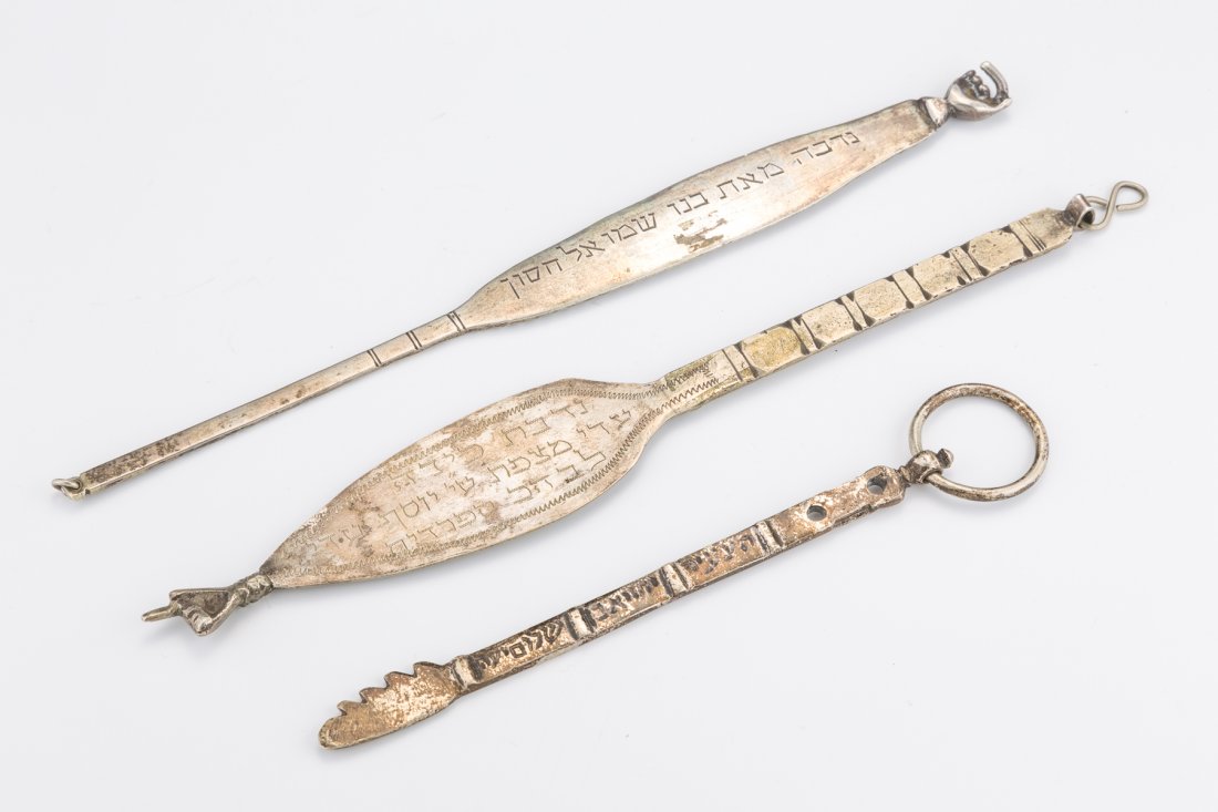 THREE SILVER TORAH POINTERS. Sephardic, c.1900. The