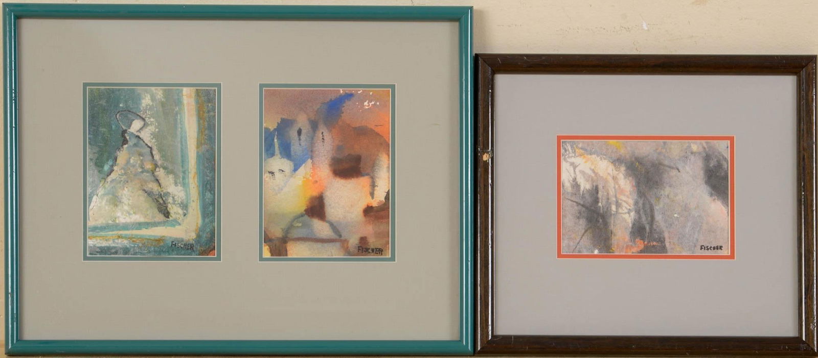 THREE SMALL ABSTRACT WATERCOLORS, SIGNED FISCHER