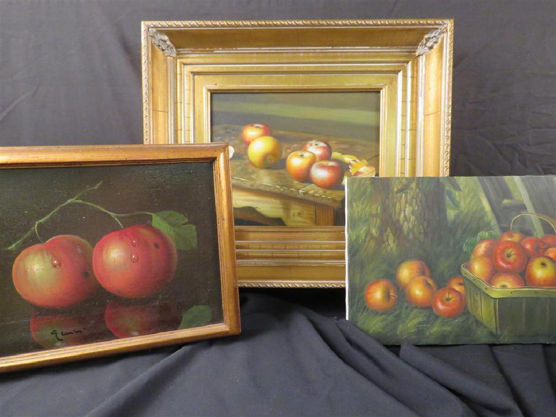 THREE SMALL STILL LIFE PAINTINGS: APPLES