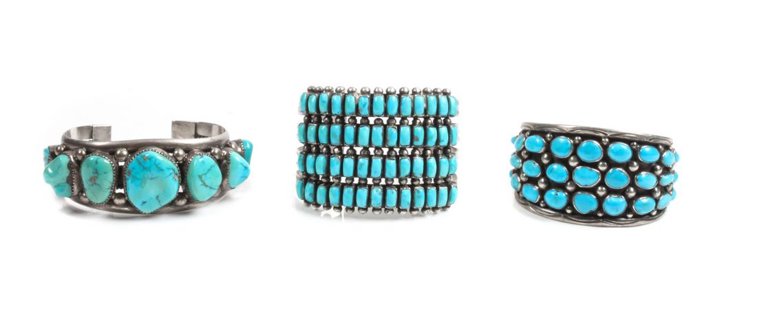 Three Southwestern Silver and Turquoise Cuff Bracelets