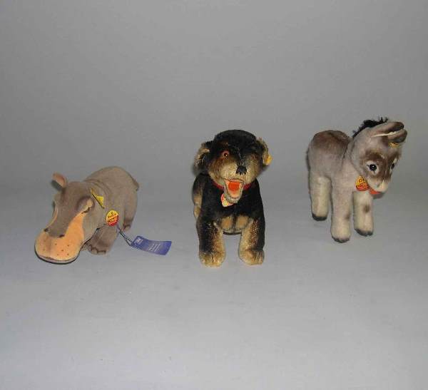 Three Steiff stuffed animals, , Hippopotamus (Moc