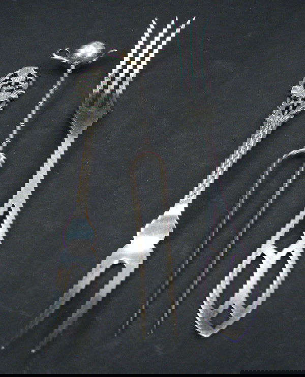 Three Sterling Serving Forks including teapot han