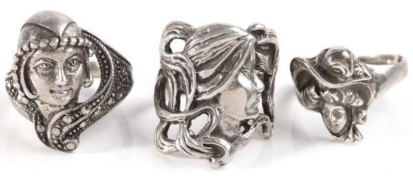 Three Sterling Silver Face Rings
