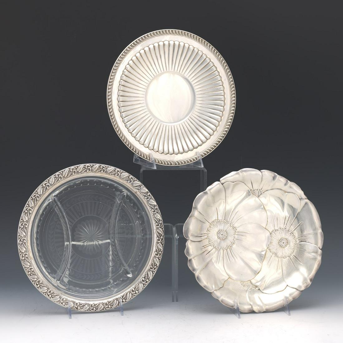 Lot Of Seven Weighted & With Glass Sterling Silver ItemsFeb 28, 2026CHRISTOFLE GALLIA SILVER PLATE MIXED LOT VINTAGE HOLLOWWARE5 days Left(3) AMERICAN STERLING SILVER DISHES, GORHAM & INTERNATIONAL SILVER CO.6 days LeftSterling silver hollowware, 3pc. reticulated rim bowls and International round footed canape tray,5 days LeftSterling silver 3pc. serving dish group / underplate / tray, 15.113 ozt. 1 1/2"H x 13"W (largest5 days LeftThree Sterling Silver Serving PiecesMar 07, 2026Six Gorham sterling silver luncheon / bread plates, 22.026 ozt. 6 1/2"Diam. (one plate measured)5 days LeftGorham and Webster sterling silver oval underplate serving trays, 2pc., 16.881 ozt. 3/4"H x 13 1/2"W5 days LeftThree Silverplated Serving ItemsMar 05, 2026Grouping of Six Silverplate Serving Trays, 20th CenturyMar 07, 2026(3) PRESSED GLASS ABC PLATESFeb 26, 2026Five-Piece Silverplate Serving Bowl and Tray GroupingMar 07, 2026TWO SILVER DISHES, 464gFeb 25, 2026A Group of Cut Glass and Pressed Glass TablewareFeb 25, 2026Four Vintage Silverplate Holloware PiecesFeb 28, 2026A group of sterling silver table itemsMar 03, 2026