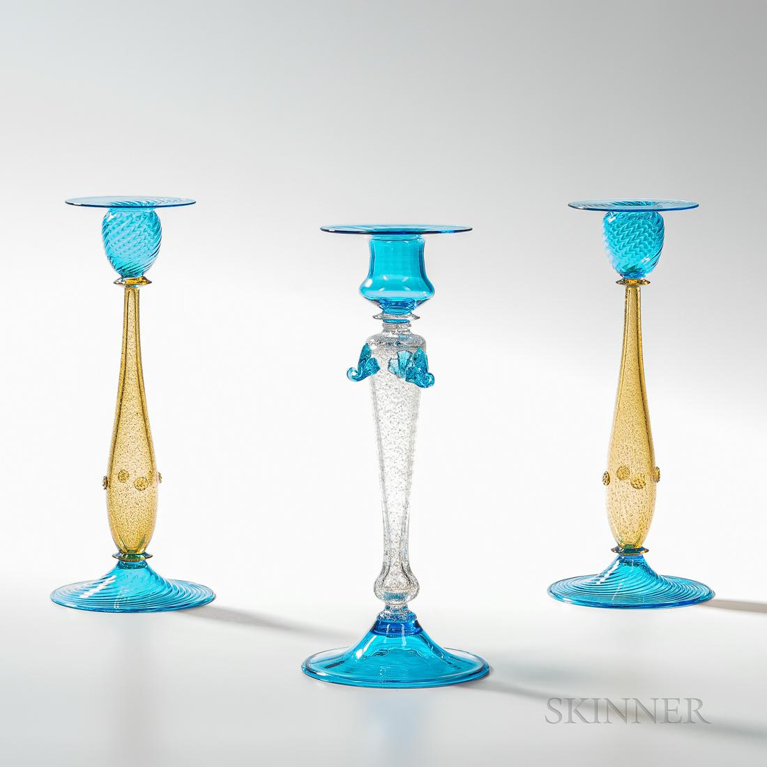 Three Steuben Cintra Candlesticks, Corning, New York,