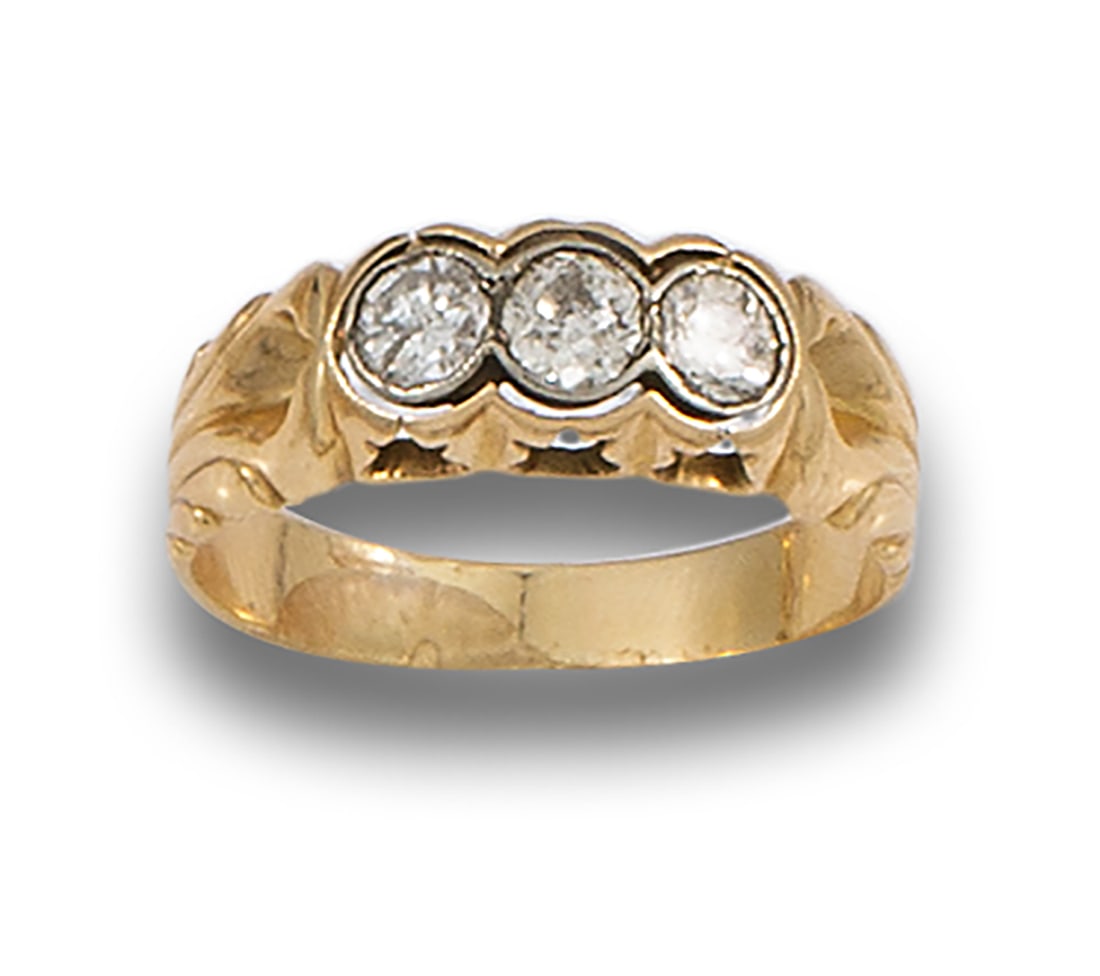 Three Stone Antique 18k Yellow Gold Old Cut Diamond Stackable Ring .32ctwBidhaus4.2(842)$1004 days Left