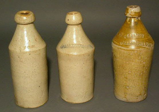 Three stoneware bottles- B. McClor 10.5"h., P.M. De