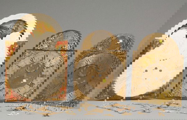 Three Tall Clock Dials and Cast Brass Dial Spandre