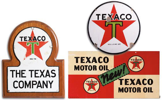 (3) Atlantic/Standard Oil/Signal Oil Single-Sided Porcelain SignsMar 14, 2026Flats Fixed and New And Used Tires Vacuform Service Station SignsMar 20, 2026Texaco Single-Sided Porcelain Round SignMar 14, 2026Texaco Single-Sided Porcelain Round SignMar 14, 2026Texaco Keller & Wolfel Distributor Single-Sided Porcelain SignMar 14, 2026(2) Texaco Fire-Chief & Diesel Chief Gasoline Gas Pump PlatesMar 14, 2026Texaco Clean Clear Golden SSP Advertising SignMar 21, 2026Texaco W.F. Coe Consignee Single-Sided Porcelain SignMar 14, 20266FT Texaco Double Sided Porcelain Dealer SignMar 21, 2026Texaco SSP Lubester SignMar 20, 2026Texaco Marshall Oil Co. Distributor Single-Sided Porcelain SignMar 14, 2026Texaco Single-Sided Porcelain Round Sign 15"Mar 14, 202672" Texaco DSP Porcelain Advertising SignMar 21, 2026(2) Texaco Sky Chief Su-Preme Petrox Gas Pump PlatesMar 14, 2026Texaco Gasoline Motor Oil 42" SSP SignMar 21, 2026Texaco Walter R. Wood Consignee SSP Key Hole SignMar 21, 2026