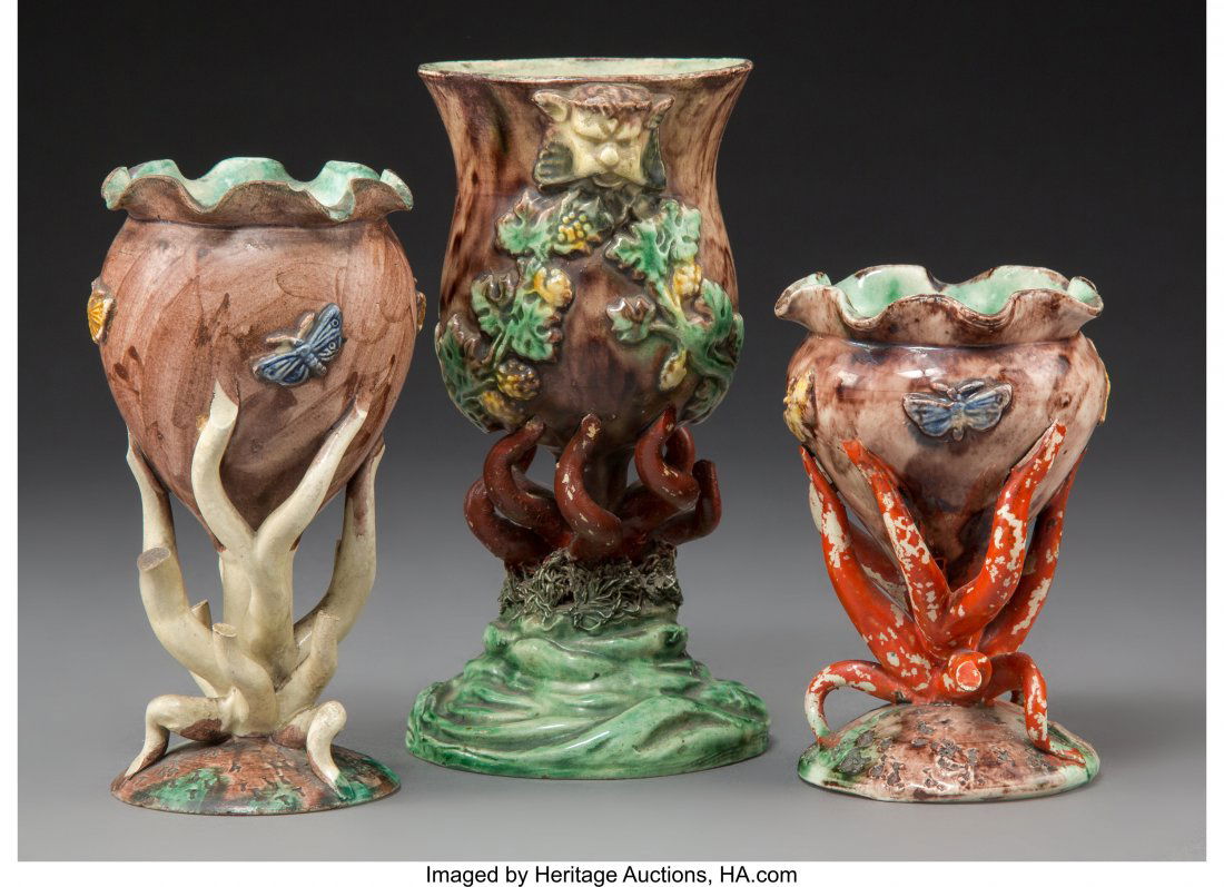 Three Thomas Sargent Palissy Ware Vases, Paris,