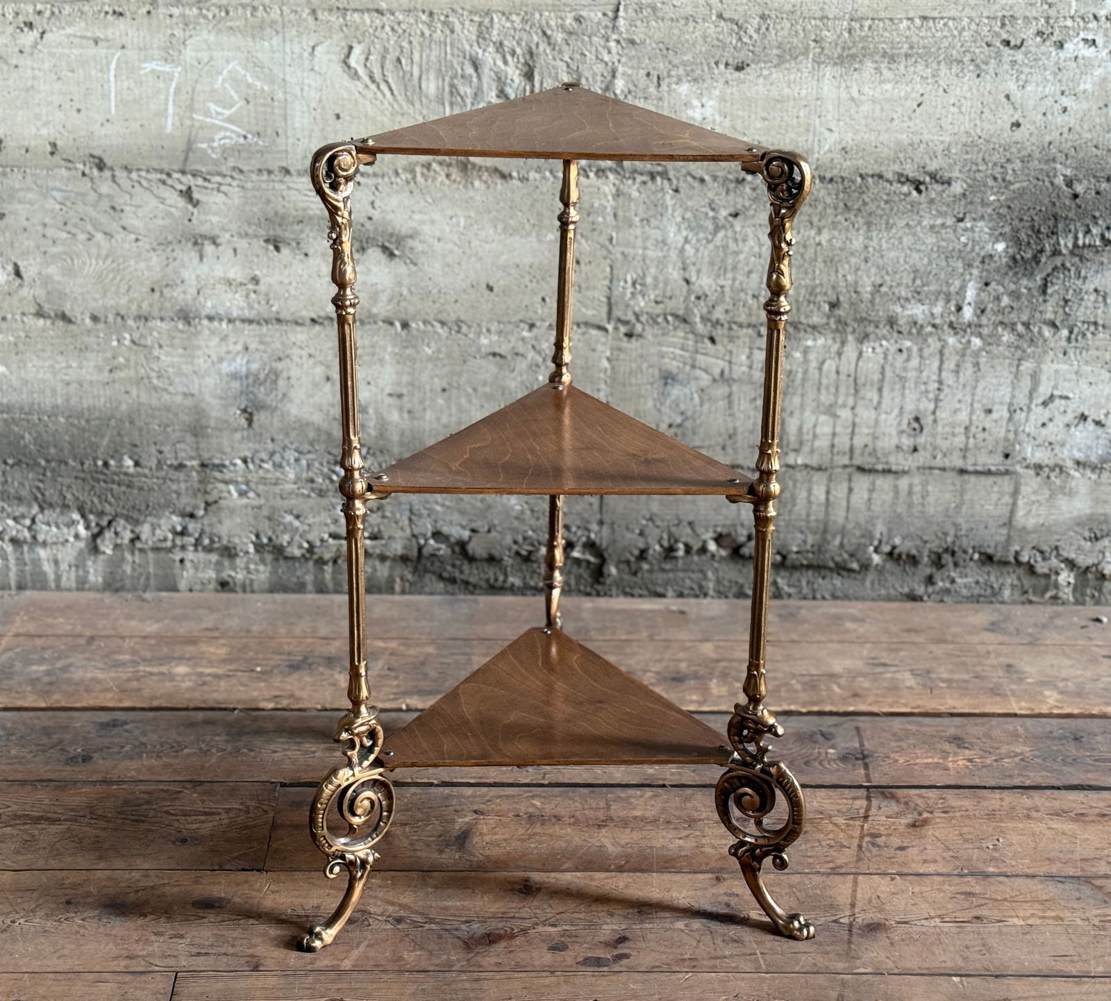 THREE-TIER SHELF WITH BRASS DRAGON FRAME