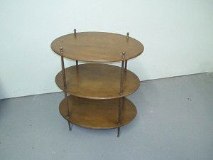 SoldA Baker Table.A Baker Table. Three tiered table raised on casters. Together with a Sherrill round occasional table (25.5" x 18") Baker table: 26.25" x 24" x 24"See Sold Price