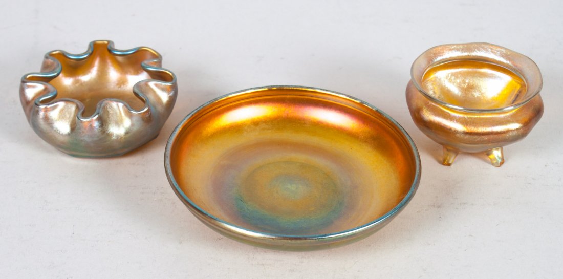 Three Tiffany glass objects