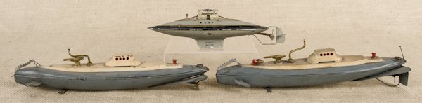 Three tin clockwork submarines, 12 1/2'' l. and 9