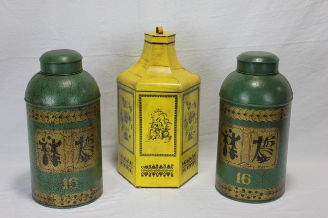 Three Toleware Italian Tin Canisters