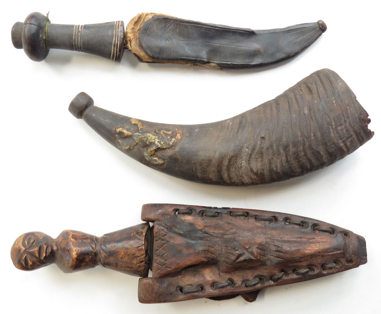 TWO LARGE ANTIQUE EASTERN HORN HANDLED DAGGERS. Largest 41 cm long. (2) WE ARE UNABLE TO OFFER IN HHannam's Auctioneers Ltd4.3(416)£405 days Left