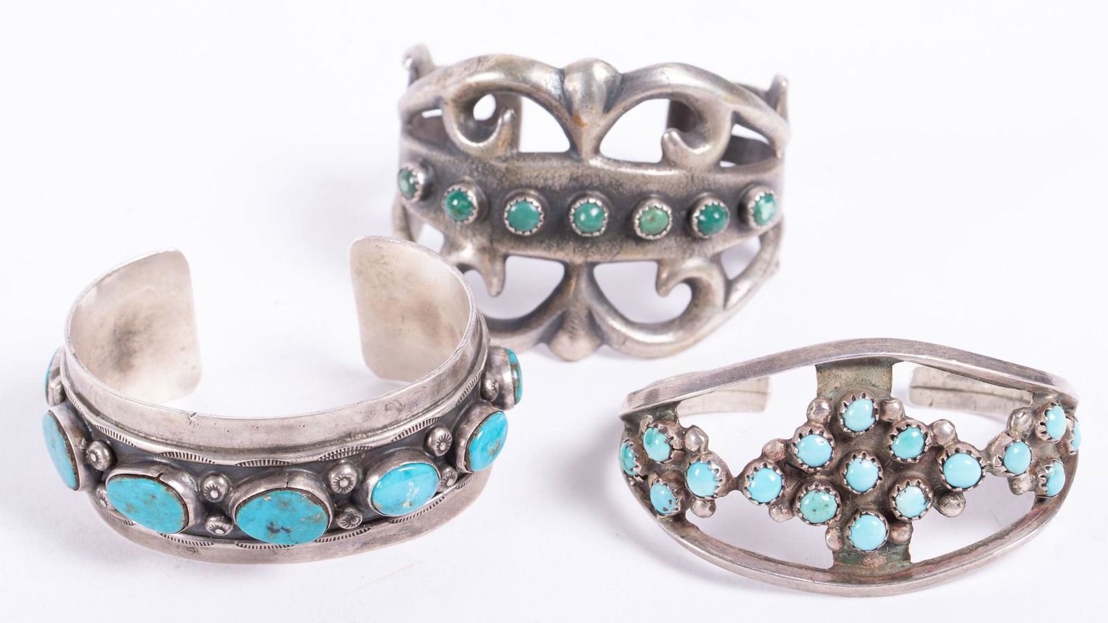 Three Turquoise and Sterling Silver Cuff Bracelets