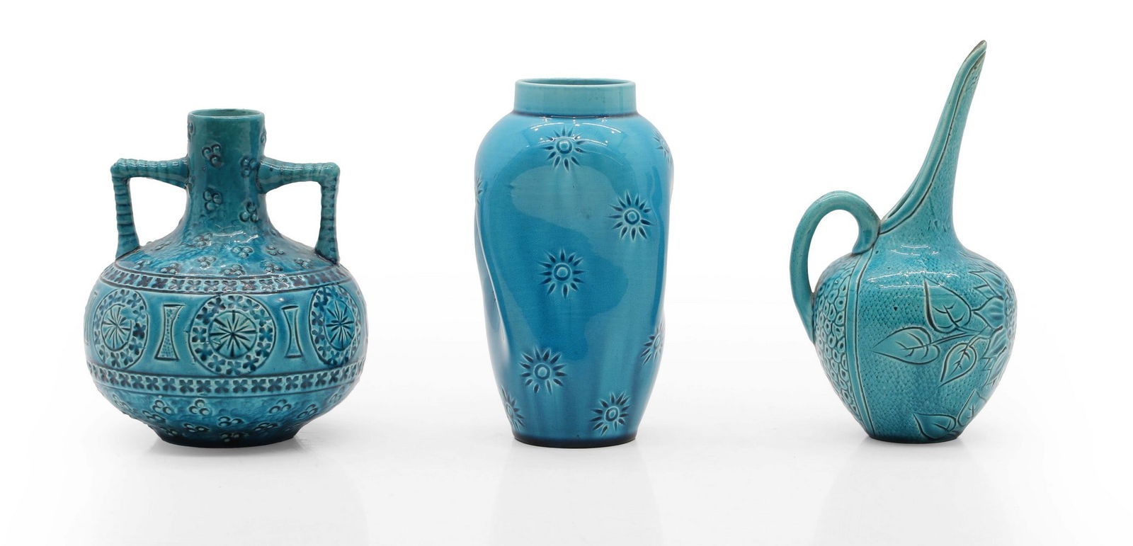 Three turquoise Burmantofts Pottery vases,