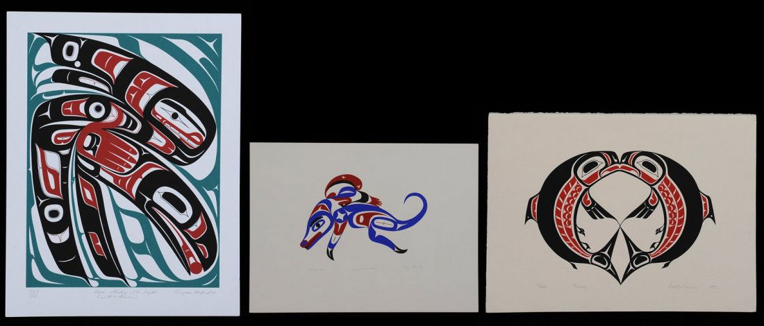 Three Unframed Serigraphs "Raven Stealing the Light (wi