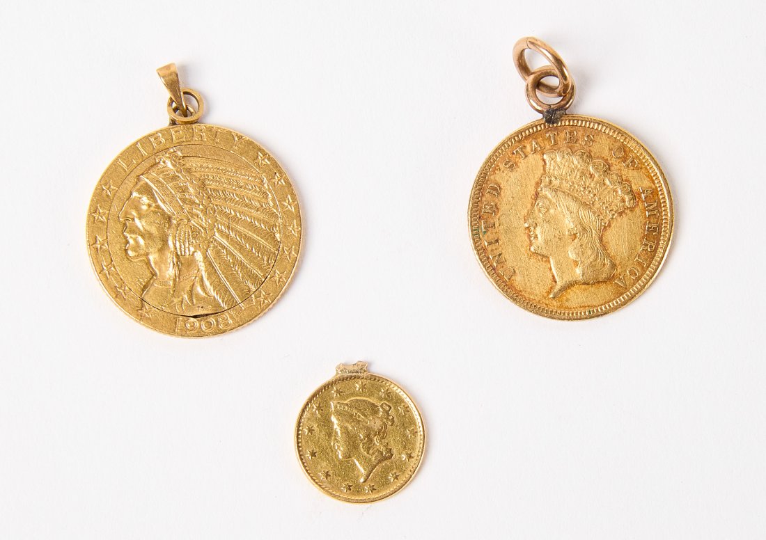 A lot of three gold open face pocket watch Various datesTwo late 19th century gold coins comprising (2)(10) Gold $20 Liberty Head Brilliant UncirculatedMar 11, 2026Two coin pendants. 585 yellow gold and rose gold.23 hrs Left19th Century Silver Trade Coins with 1877 U.S. Trade Dollar & Sterling PendantMar 28, 2026Type Set of Gold Dollars: Types One, Two, and ThreeMar 10, 2026Group of Seven [7] Coin Related and Other Items.Mar 11, 20265pc SILVER COIN SUITE: EARRINGS, PENDANTS, TIE PIN1 day LeftU.S. $1.00 GOLD COINMar 15, 2026Three Thai Copper Alloy Devotional Medallions, 20th Century, 67FN10 hrs Left1862 $1 Gold Type 3 Coin EF Uncertified Philadelphia MintMar 06, 2026U.S. $1.00 GOLD - 1851Mar 15, 2026(4) 14K PENDANT CHARMS6 days Left(4) Gold $5 Liberty Head Almost MintMar 11, 2026(4) Gold $5 Liberty Head Almost MintMar 11, 2026(4) Gold $5 Liberty Head Almost MintMar 11, 2026