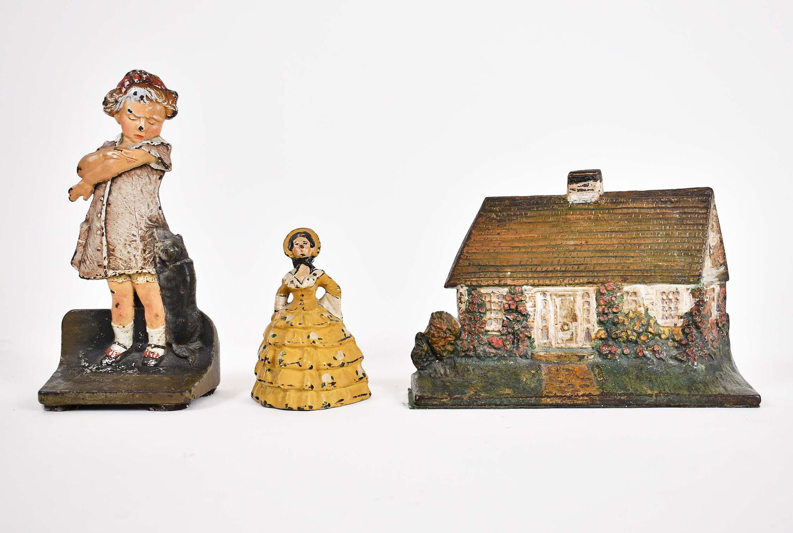 THREE VARIED PAINTED CAST IRON DOORSTOPS