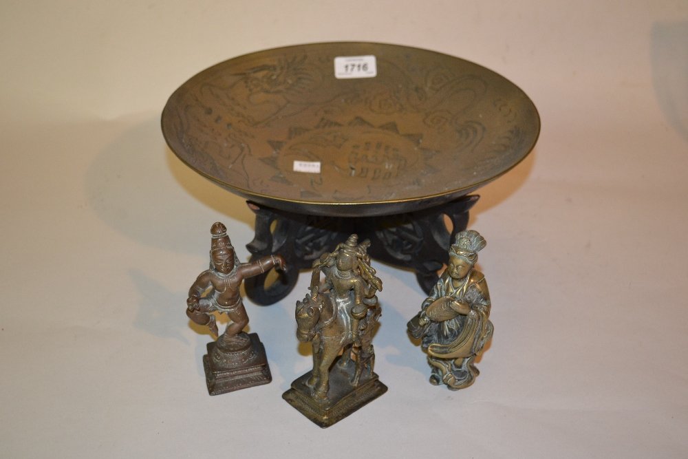 Three various small bronze figures together with an