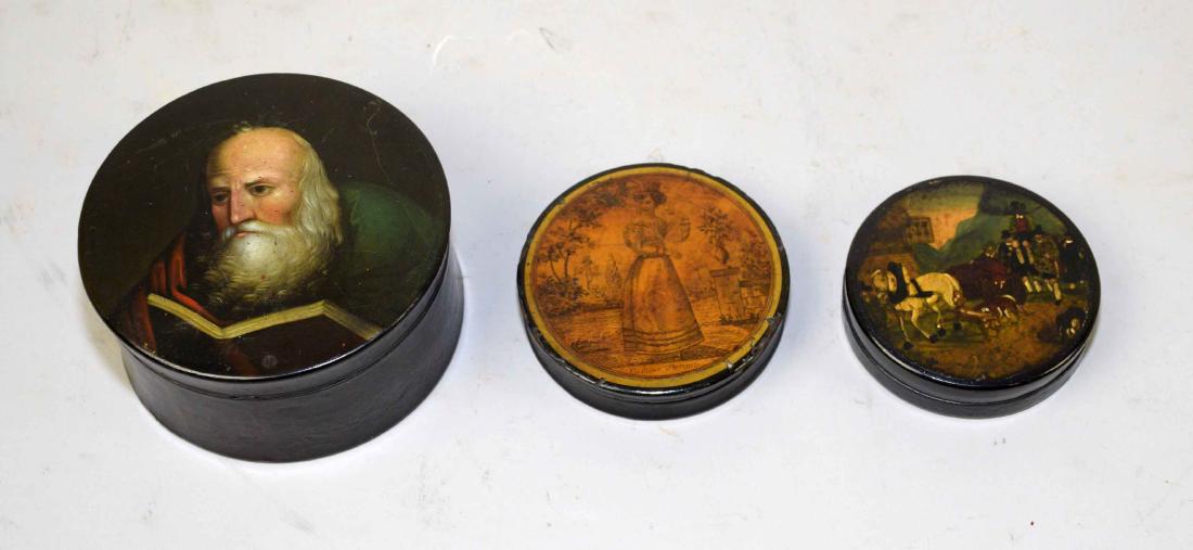 THREE VARIOUS VICTORIAN STYLE LACQUER TOBACCO BOXES,