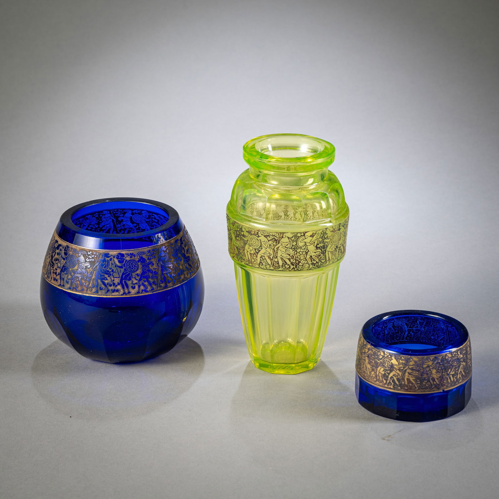 THREE VASES WITH GOLD RELIEF