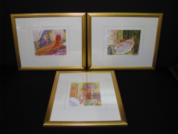 THREE W. J. HUETTEL LITHOGRAPH BATHING NUDES