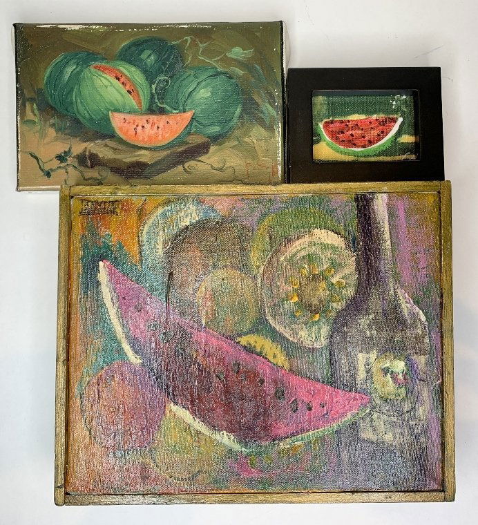 Three watermelon paintings