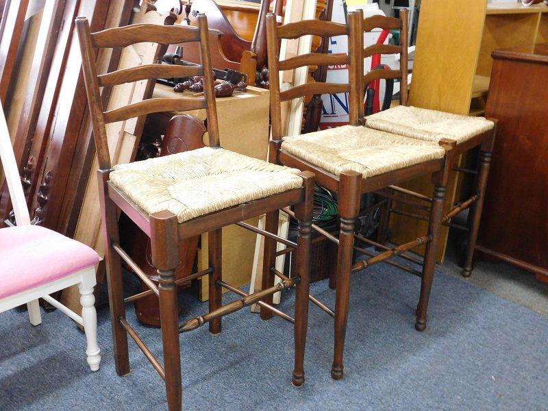 Three Wood Bar Stools with Rush Seats