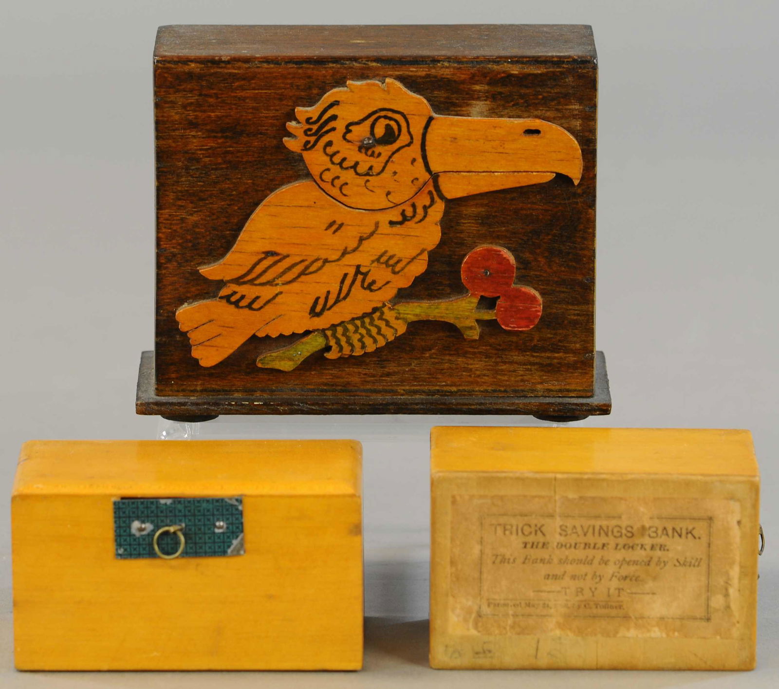 THREE WOODEN MECHANICAL BANKS